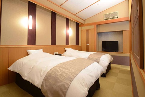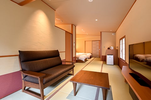 こちらのお部屋は4名様以上のお客様も一緒にご滞在いただける広いお部屋です。(3名様以上はお布団でのご対応となります)