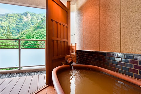 「美肌の湯」と評判の自家源泉をご満喫いただけるお部屋です。