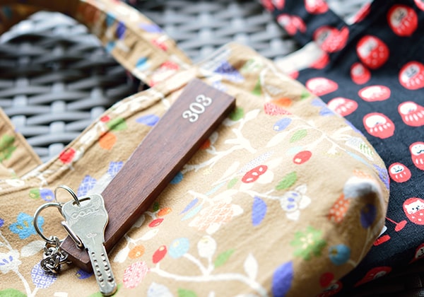 お部屋の鍵は和柄のバッグに入れて