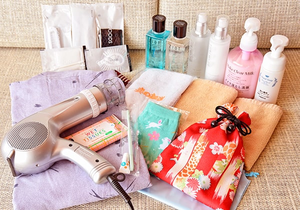 アメニティ袋や靴下も華やかな和柄をご用意。