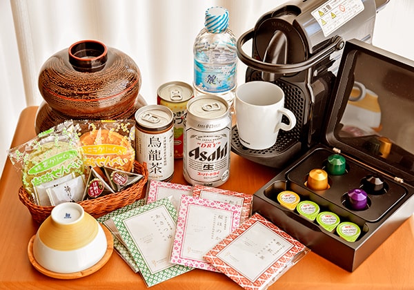 無料ドリンク、エスプレッソマシンのコーヒーなど